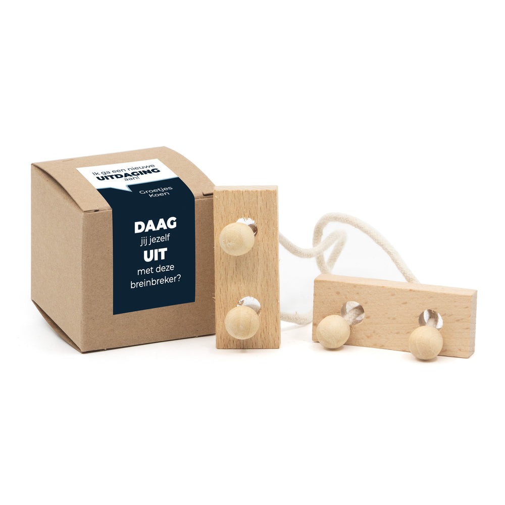 Game over! Een leuke houten breinbreker in een kraft kubus doosje. Wij leveren dit doosje met een persoonlijk etiket ... Lees meer