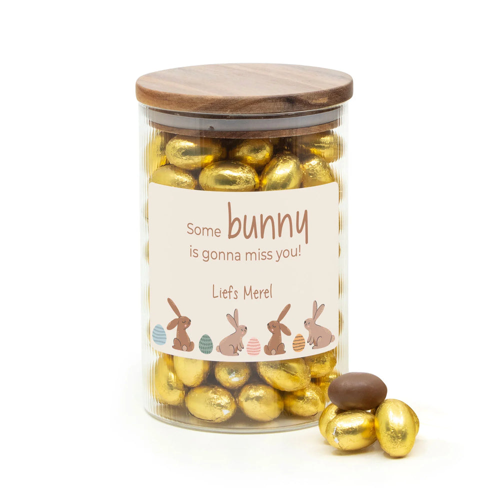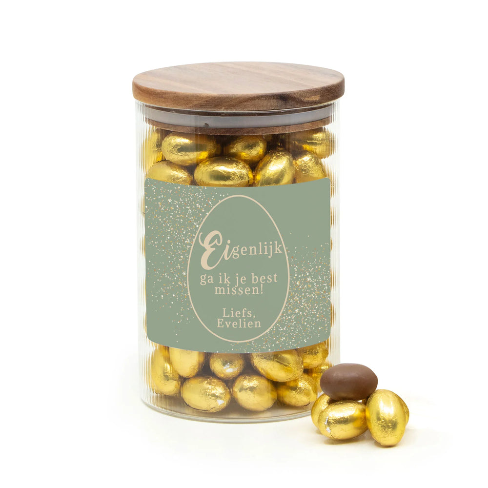 Bedank jouw (ex)collega's voor de fijne samenwerking met deze stijlvolle pot gevuld met heerlijke melkchocolade eitjes en een persoonlijk etiket. Zet jouw persoonlijke boodschap op het etiket via de online ontwerptool en laat ze weten dat je altijd erg BLEI bent geweest met zulke lieve collega's.