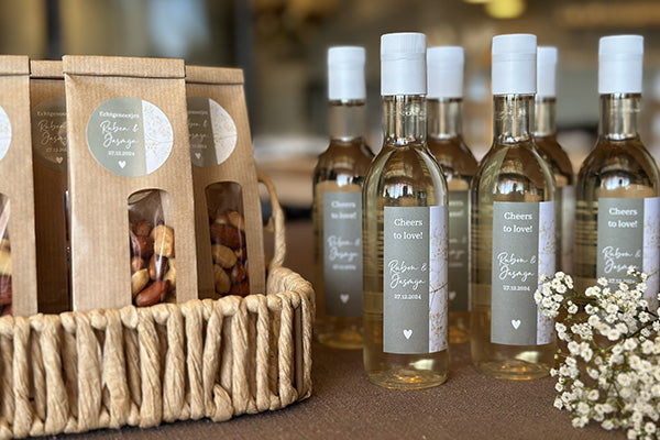 Het is echt een traditie om iets aan je gasten mee te geven aan het einde van jouw trouwdag. Het liefst zo origineel mogelijk natuurlijk. Wij hebben unieke bruiloft bedankjes die je zelf kunt personaliseren met jullie namen, de (nieuwe) achternaam of de trouwdatum. Wat dacht je van een glazen potje gevuld met snoepjes, een gegraveerde kaarshouder, chocoladereep of een hartjes USB-stick met daarop de namen van het gelukkige echtpaar.