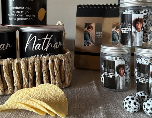 De leukste communiebedankjes en bedankjes voor een lentefeest. Speciaal voor Jongens hebben we in deze categorie bedankjes die je kunt personaliseren met een eigen naam, tekst en foto.