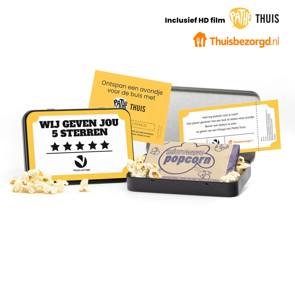 Gun je medewerkers, collega’s of relaties een momentje voor zichzelf met dit feestelijke filmblik incl Thuisbezorgd vouchercode. Perfect als origineel én persoonlijk cadeau: film aan, hapje erbij en genieten maar!