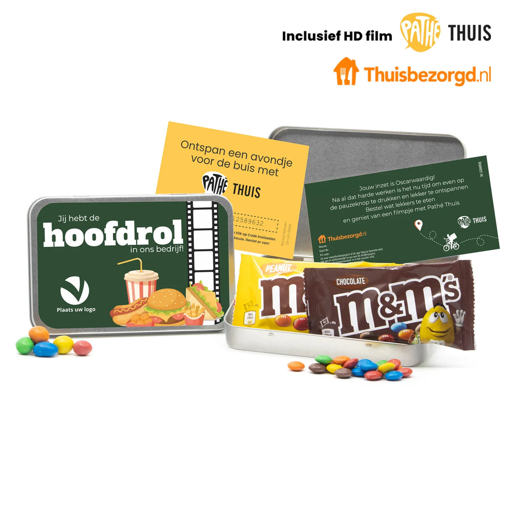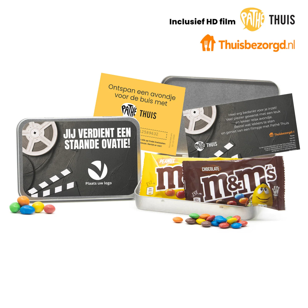 In het stijlvolle metalen blik vind je alles voor een relaxte filmavond: