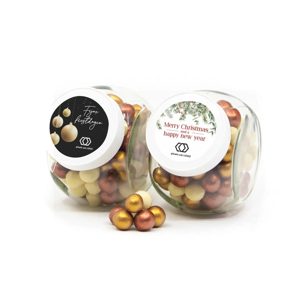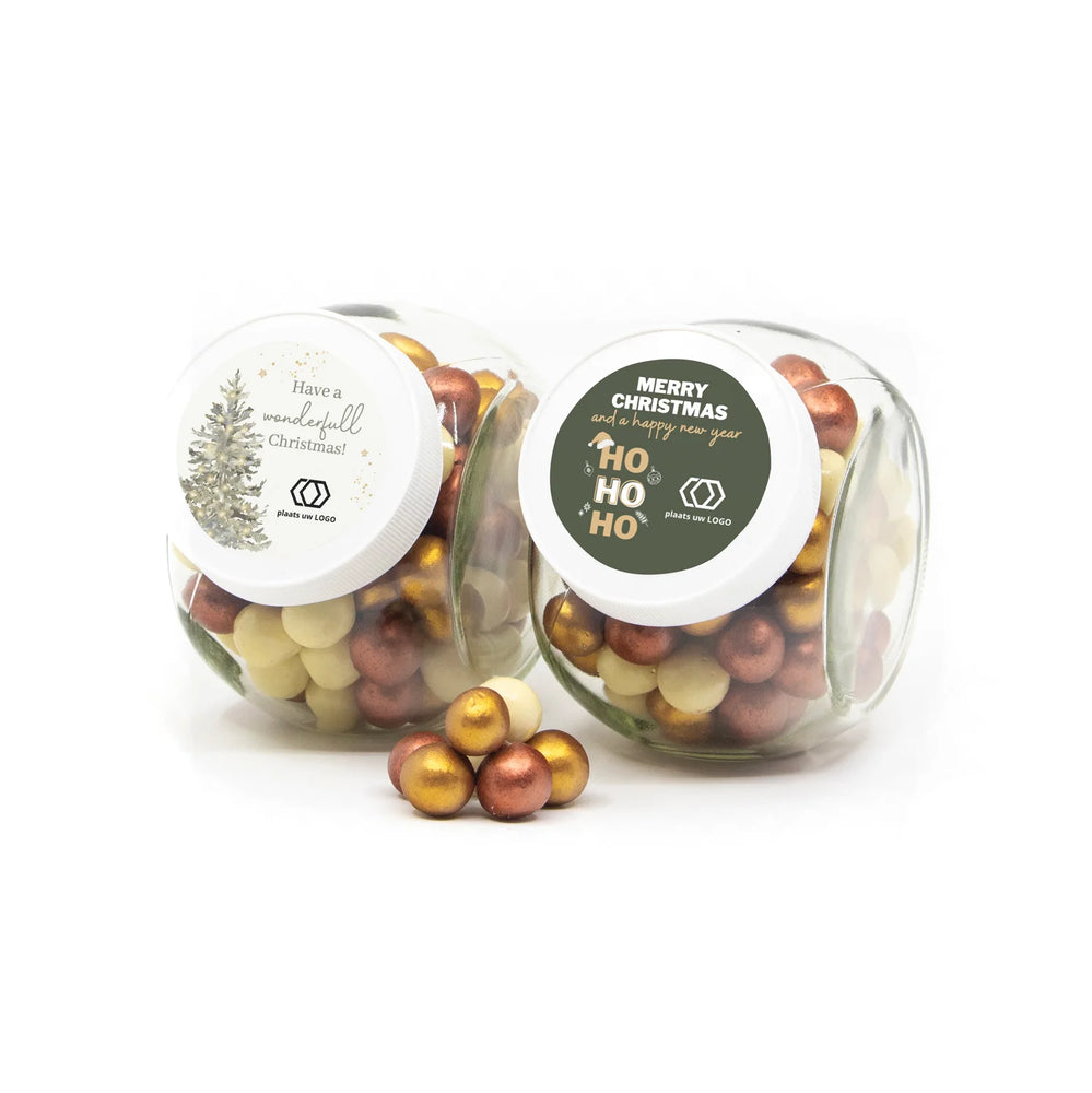 Glazen snoeppot 0,4L met eigen etiket - Kerst