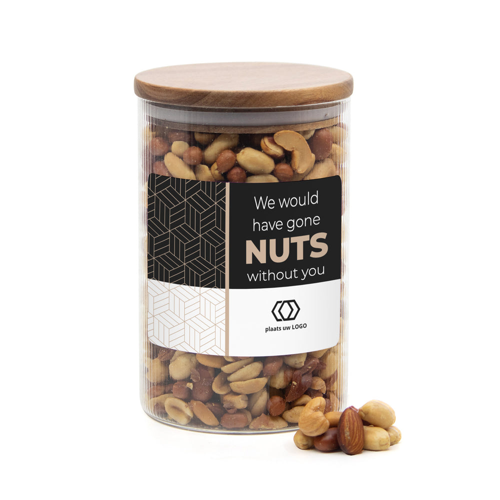 Luxe grote pot met ribbelglas met verse notenmix - Vrijwilliger