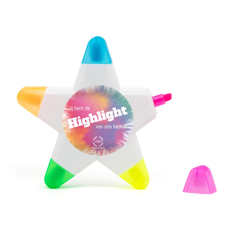 Jij bent de ster van ons bedrijf! Deze markeerstift voorzien we van een persoonlijk etiket die je zelf kunt opmaken m... Lees meer