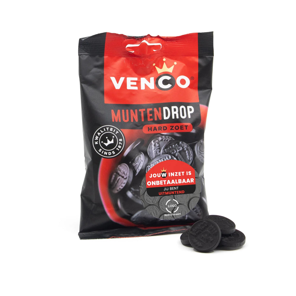 Laat je waardering zien met een heerlijk zakje Venco Muntendrop.
