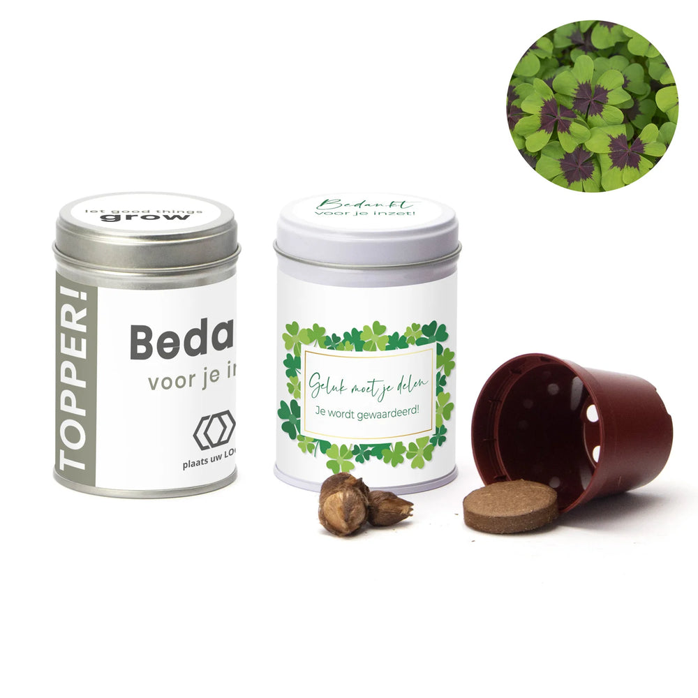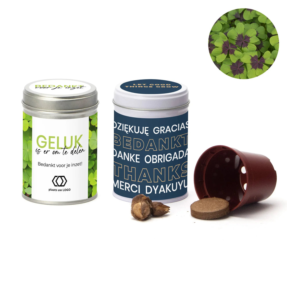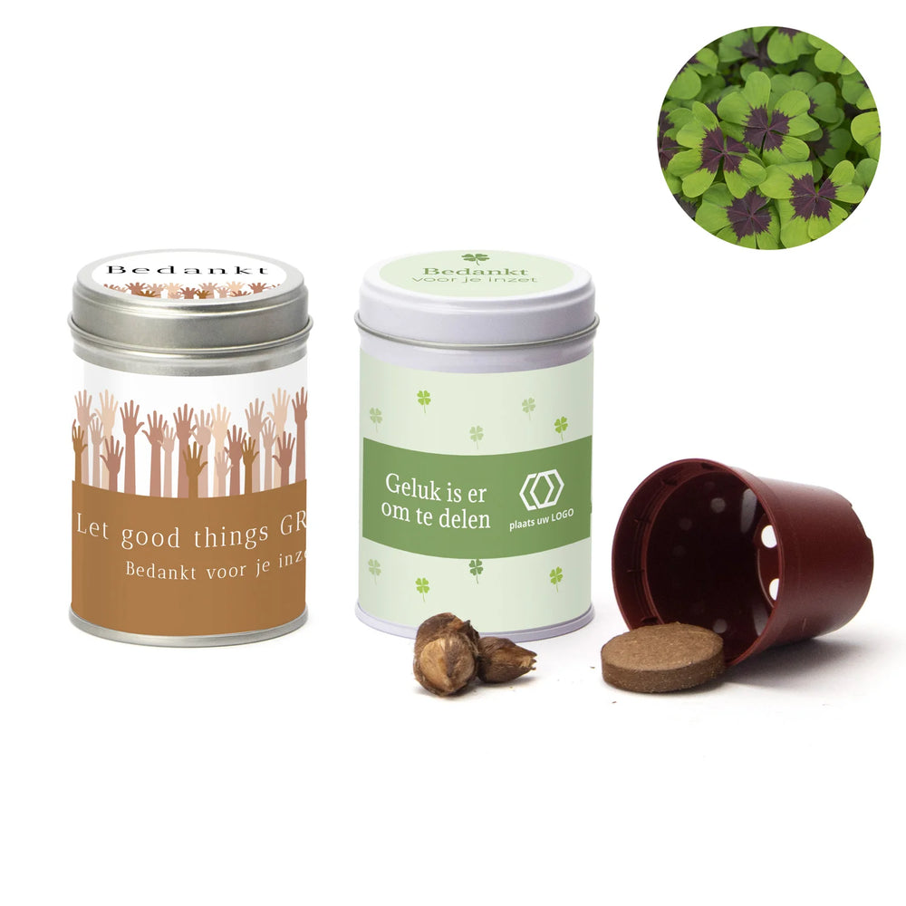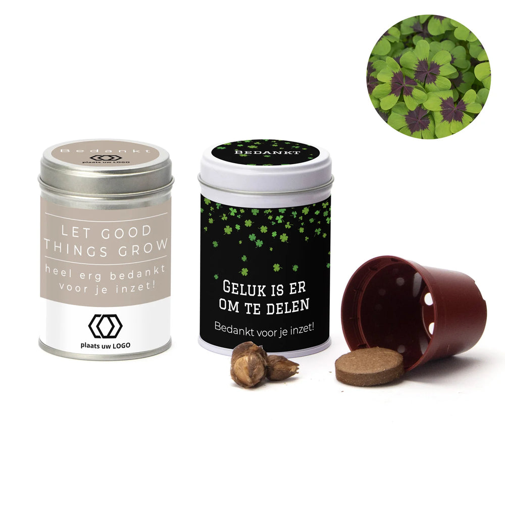 Klavertje vier kweeksetje in blikje - Zakelijk