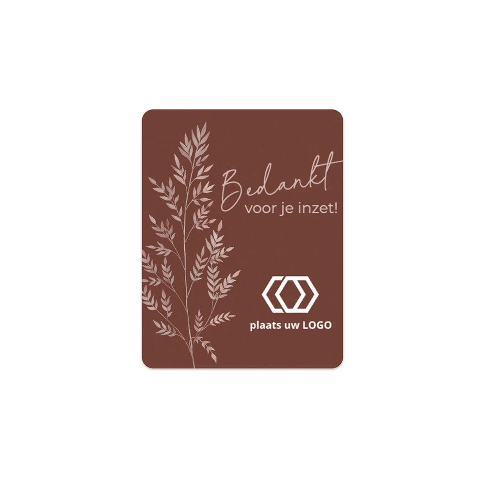 Persoonlijke stickers van 3,5 x 4,5 cm. Leuk om je bedankjes persoonlijk te maken. Je kunt de stickers eenvoudig zelf ontwerpen in onze tool of gebruik een van onze voorbeeld ontwerpen.