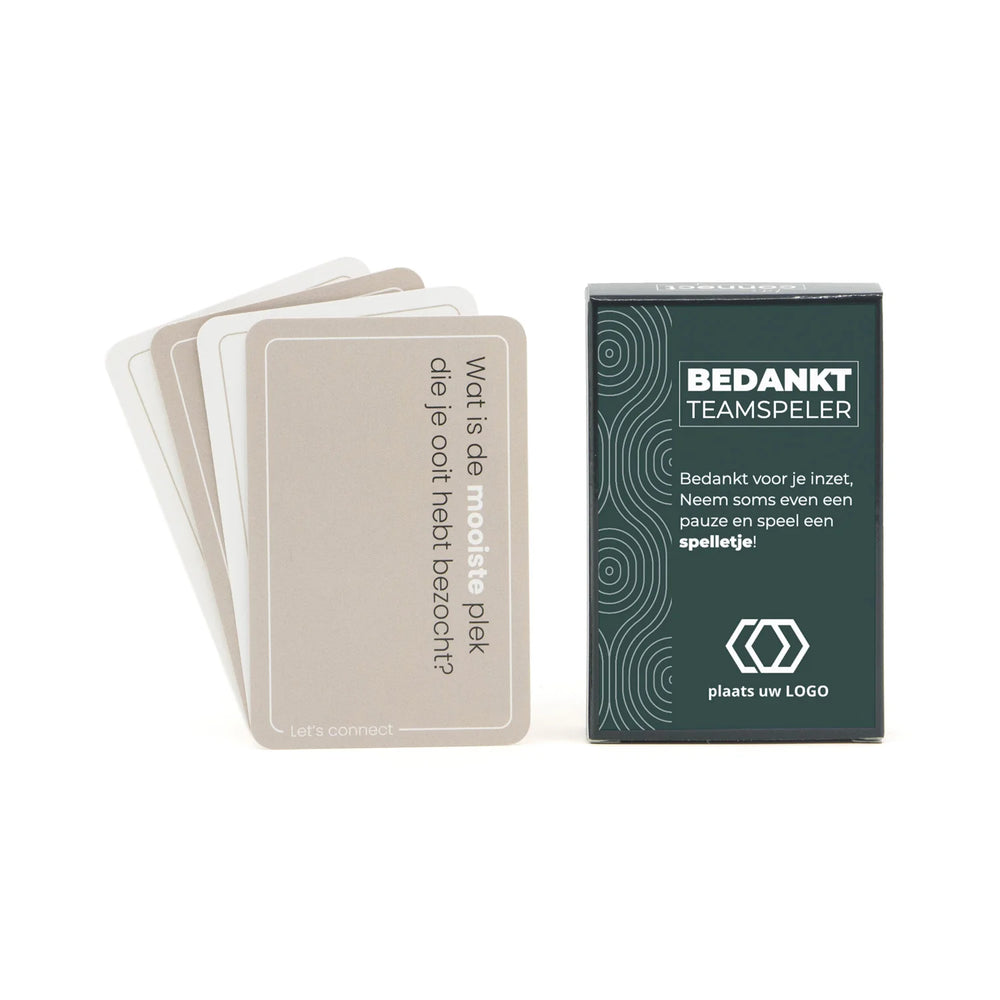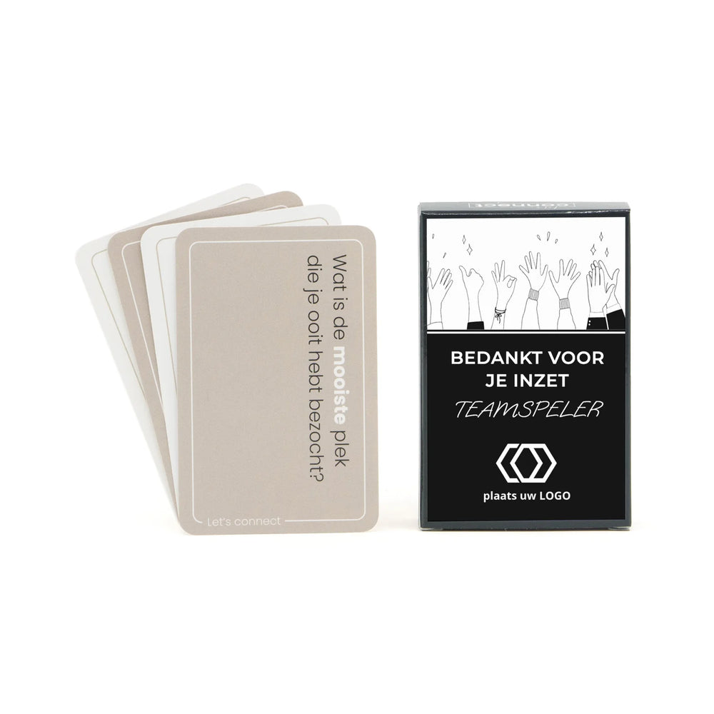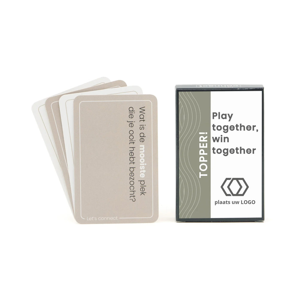 Voor de teamplayers! Laten we “connecten”! Mobieltjes weg en even de tijd om meer over elkaar te weten te komen. Dit spel bevat 50 kaarten met 100 vragen die je in elk gezelschap kunt stellen. Met deze kaarten is het gemakkelijk om vragen te stellen die je normaal niet zomaar zult stellen. Vragen als: “Welke cliché vraag komt echt jouw neus uit?” of “Benoem iets wat mensen nog niet van jou weten” zetten je aan het denken en zorgen voor leuke gesprekken en misschien wel discussies.